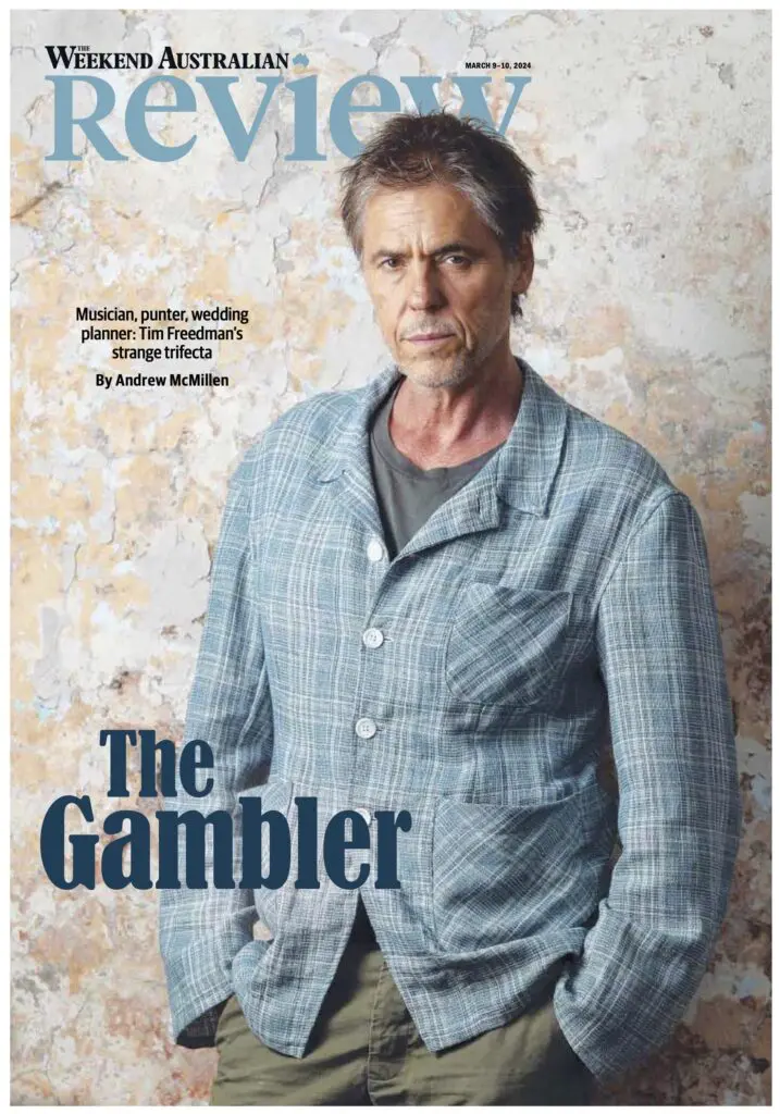 By race six, Freedman looked around and realised half the male guests were sitting on the bed with him, gambling apps open, following his bets and cheering along. The bride was understanding, but would occasionally chastise the blokes to come back out for the speeches. It was about this point in the wedding – there’s always a point, he says, roughly four or five drinks in – when a bridesmaid lost her inhibitions enough to come out with it by asking him: “You’re that bloke from The Whitlams, aren’t you?”